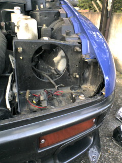 まず現在のライトを全て撤去します。外した物は車検用に保管しましょう。特に光軸調整ネジは無くさないよう注意です。