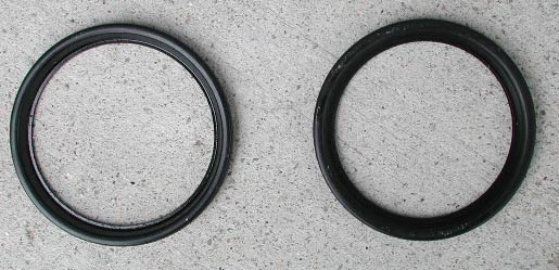オイルフィルターの外周に取り付けられているゴムのリング。左がスズキ純正だが、大差ない。