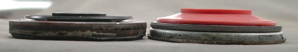 横から見たところ。パッキンの高さが異なる。また構造的にみても、新型の方がちゃんと機能しそうな感じがする。