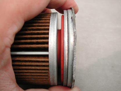 今まで紹介してきたオイルフィルターとこのフィルターでは決定的に異なる部分がある。逆流防止パッキンの色だ。今まで紹介してきたのは旧型で黒かったが、このフィルターは新型でオレンジ色がかっている。