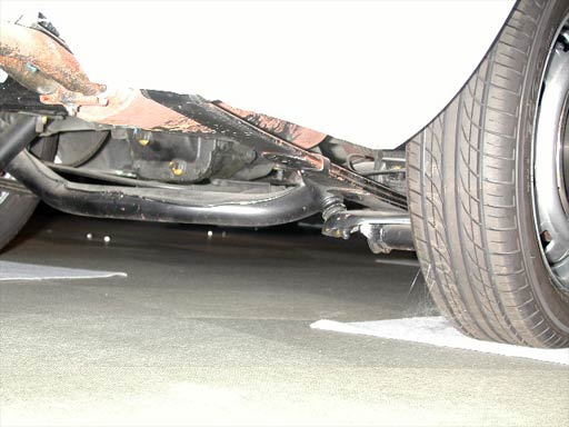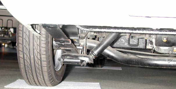 リアの下回り三連発。フロント同様、足周りはきれいなのだが、マフラーに錆が出ている。ただし、穴が開きそうというほどのレベルではなさそうだ。