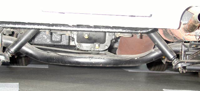 後方斜めよりフロア下をみたところ。マフラーの錆が目立つ程度で、やなりゴム関係は問題なさそうだ。