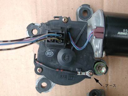 ハイゼットの場合。コネクタが本体に付いているが、形状は同じだ。アースは別のコードが伸びて、本体につけられている。