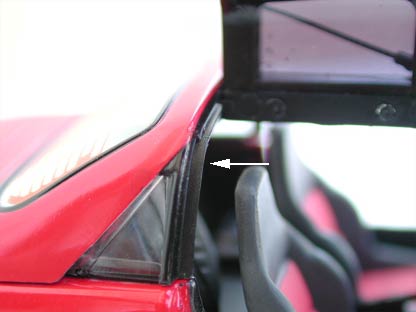 矢印のBピラー部分が実車と比較して若干細い。ガルウイングを再現してもらっただけでも有り難いので、ここまでチェックするのは酷か。