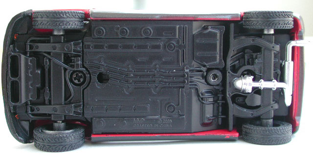 番外編。シャシー部分。構造上どうしても再現が困難な部分がある上、通常は見えないから省略もしくは簡略化してもいいとは思うが、ちゃんと再現されている。フロントの導風板、電着塗装を抜く穴、ペリメーターフレームに開けられた穴まである。強いて変な部分をあげるとすれば触媒。実車ではあんなに太くない、というか触媒はペリメーターフレームに隠れて、真下からはほとんど見えない。あとフロントにはスタビがついているのに、リアにスタビがない。ペリメーターフレームにジャッキを置く台までついていれば、これまた感涙ものだった。