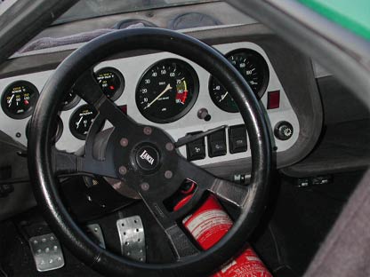 内装をみてみよう。インパネ。この角度から見ると、一瞬右ハンドル車のように見えるが左ハンドルである。フロントガラスが大きく湾曲しているがゆえのメーター配置とも言える。