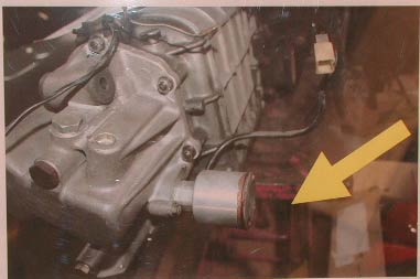 黄色の矢印で示すのが電子式車速センサー。かなり大きい。詳細な仕組みは分からないが、パルス信号を出すのだろうか。それとも車速が上がるに従って電圧が上がっていくタイプか?