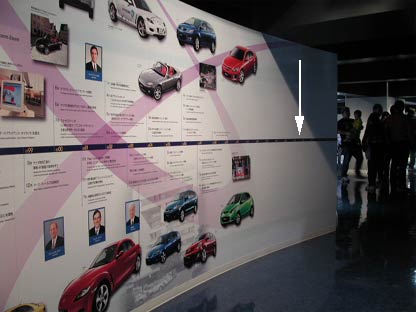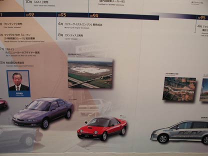 マツダミュージアムを紹介するときに毎度紹介している歴史年表。要はマツダの歴史の中からAZ−1が消されていないかを確認するお約束事項だ。