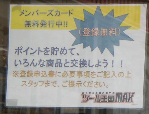 それにしても、フランチャイズ契約が切れてもなお、登録されている商標(ツール王国MAXのマークや名称)を使い続けて営業するというのもすごい。本来ならこのマークや名称だけはフランチャイズ店といえども破産管財人の管理下に置かれるので厳密に言えばまずいんだろうけど、契約先が夜逃げ状態(やはり連絡がつかないとのこと)なんだから、文句があるのなら言ってこい、という状態なのだろう。