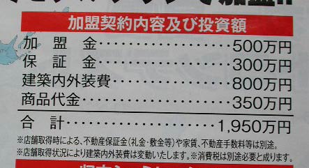 開店当初の資金について聞いてみたが、どうやら下の写真に示されている投資額と同じぐらいのようだった。この投資金額の中に含まれているのかどうか不明だが、開店当初に派遣されたツール王国MAX社員の人件費もかかったとのこと。