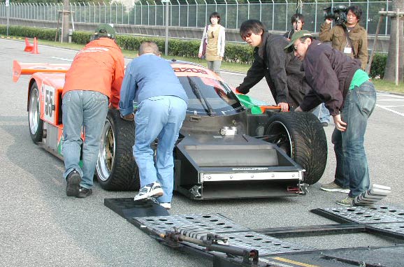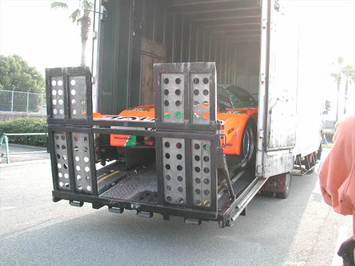 ここから先、荷台から下ろすのは一苦労。車高が低すぎるため、ノーズをはずす必要がある。これは202号車でも同じ。