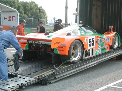 「あれから20年〜!(綾小路きみまろ調)」。ついに787B(55号車)がお天道様の元にさらされた。ここからは、55号車が運び出される様子を紹介したい。