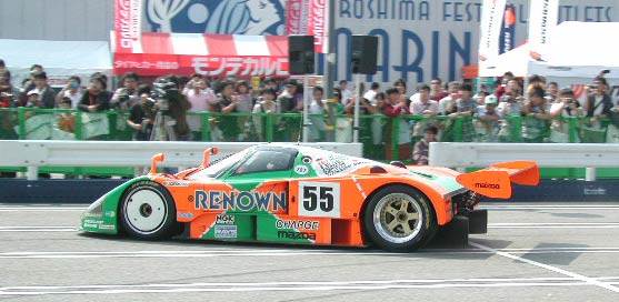 展示されていた車両がパドックに戻され、コース上はクリアになった。いよいよ走行イベントが始まる。走行するのは787B(55号車)のほかに、コスモスポーツ・マラソンデラルート仕様、RX-500、WW2のRX-7だ。ここでは787Bに焦点を絞って紹介する。