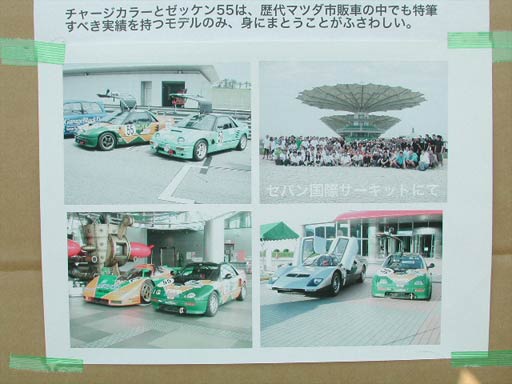 787Bが出る、しかも55号車が出るとなると、AZ-1的には黙って見ているわけにはいかない。とうわけで、歴代マツダ車の展示に参加した。