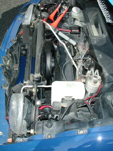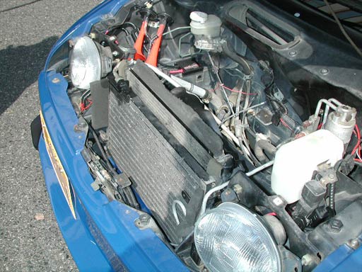 ラジエターの上端は、ヘッドライトとほぼ同じ高さになっていた。ということは、ノーマルのボンネットでも、ラジエターの縦置きは可能かもしれない。ただし、ラジエターホースなどの適切な取り回しは必要である。