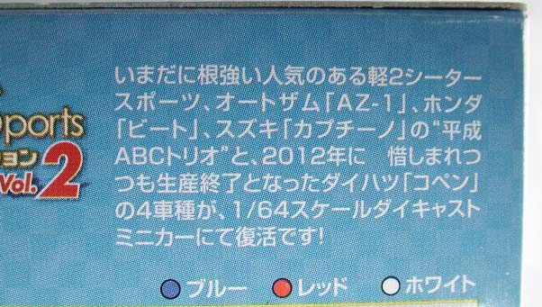 今回、純正設定の無かった色として、白のAZ−1がラインナップされた。「幻のマイナーチェンジモデル」は赤しか存在しないため、青と白は全くあり得ない色である。