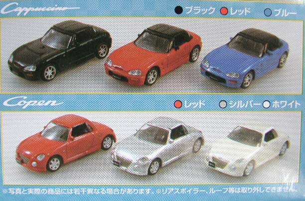 コペンの写真の下に、「リアスポイラー、ルーフなどは取り外しできません」との注意書きがある。