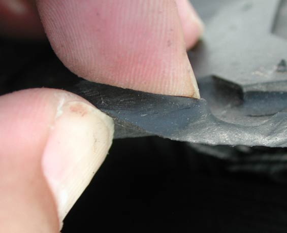 割れた部分のゴムの断面。ヒビが入っているとか、特にゴムの劣化が感じられる部分はなかった。