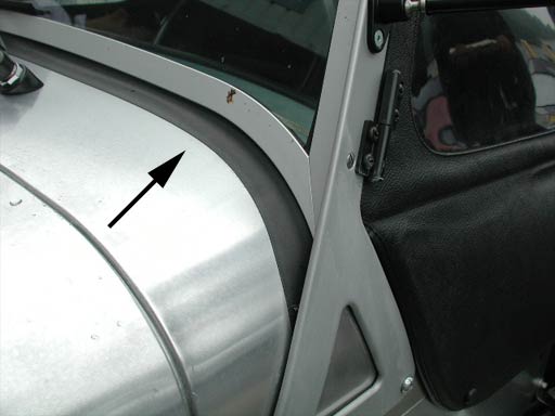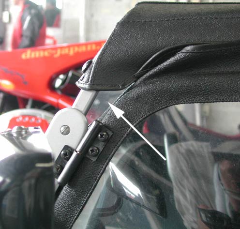 幌部分。フロントガラス下にある黒いものはゴム。雨や風の進入を防いでいる。